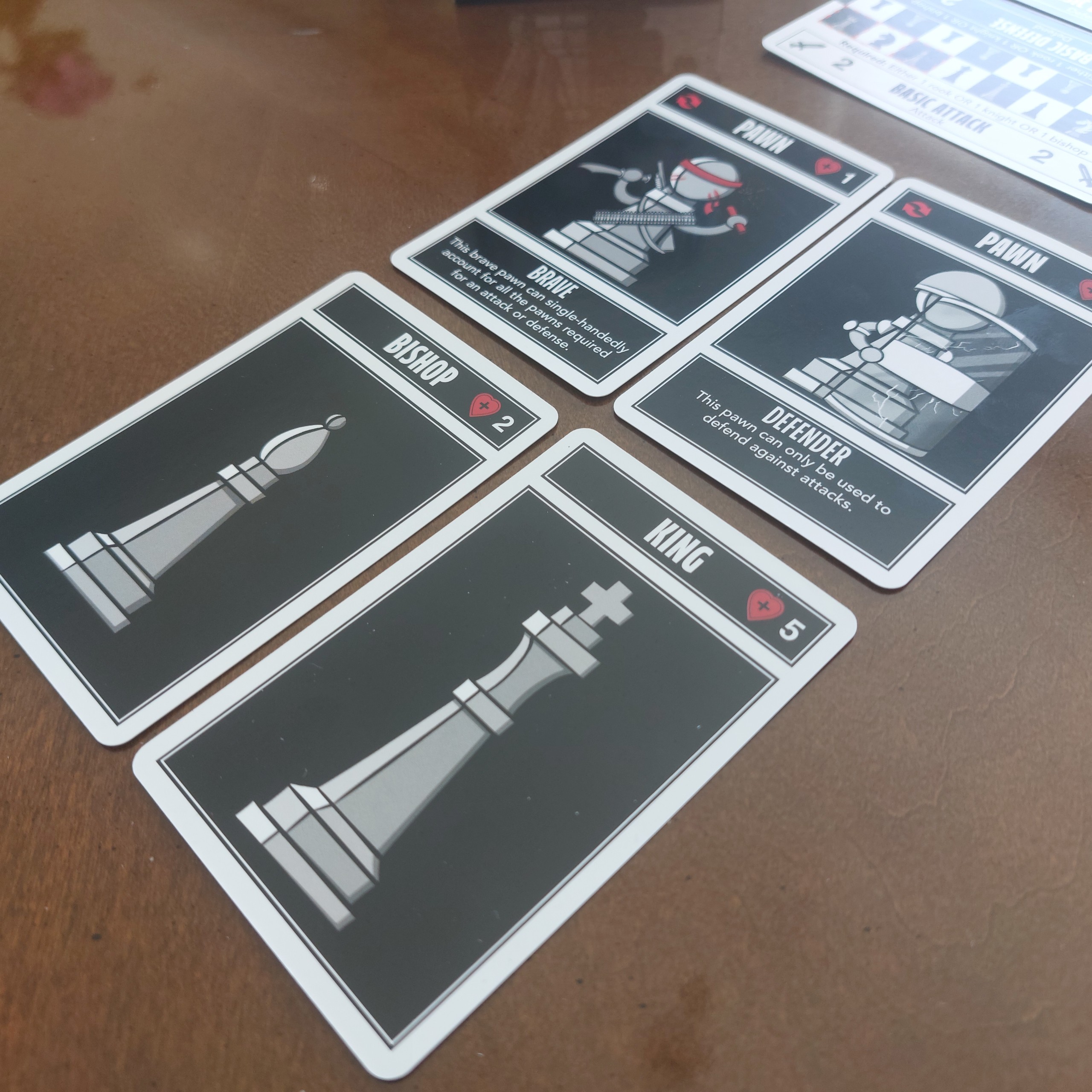 One card you can play is army pieces, allowing you to add pieces to your army, and like Chess you are limited to two knights, rooks, bishops and a queen. Unless you play the extended battlefield card, which will allow you to play additional army pieces. Pawns are of course the cannon fodder and the front line of your defences, but unlike actual Chess, pawns in Chess-a-tete often have unique abilities. And every piece has a hit point value, which matters when it comes to attacking and defending.