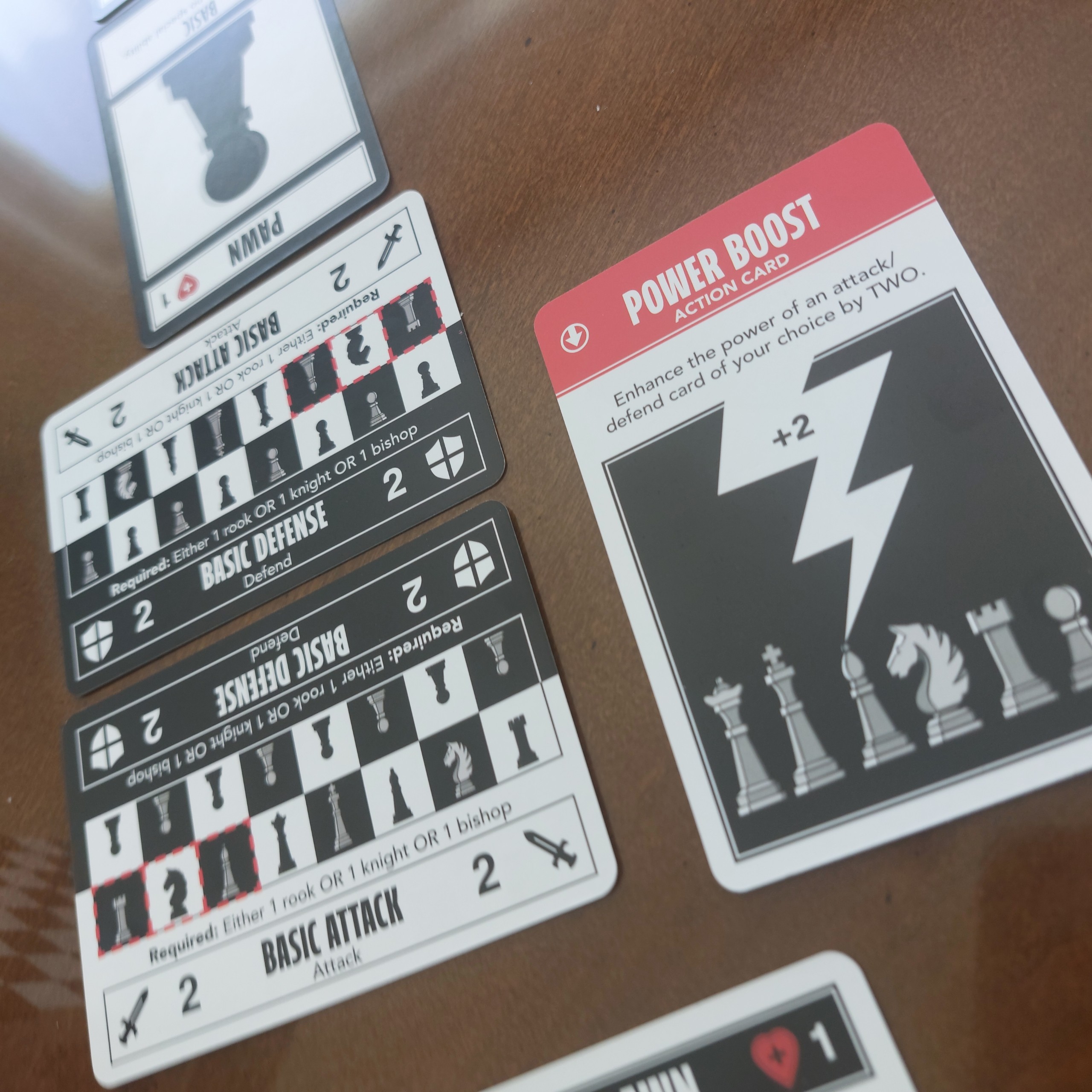 Chess-a-tete is played over a number of turns back and forth between the two players until someone is victorious! On your turn you can play upto three cards, or optionally you can burn cards by sending them to the graveyard (I smell a magic the gathering similarity!) and then drawing that many cards. After your turn you draw back upto seven.